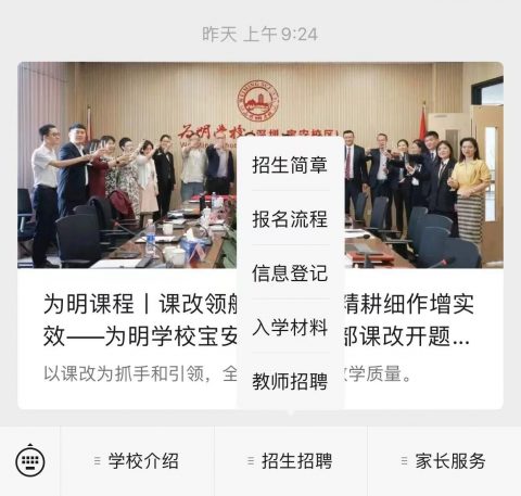 1.关注“深圳市宝安区为明双语实验学校”微信公众号。