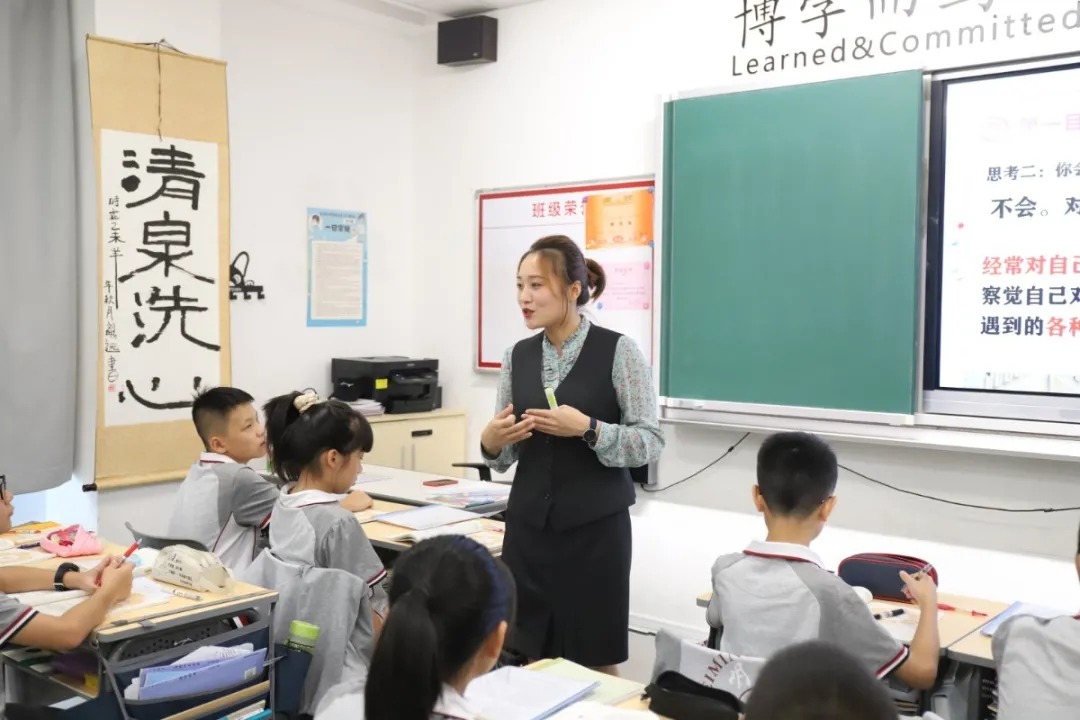 宝安区道德与法治学科教研员蔡苏瑜老师和政史科组老师们一起去观摩了赵庄田美老师《和朋友在一起》一课,赵老师课堂采用三三四体验式教学模式的形式进行课程的讲解。