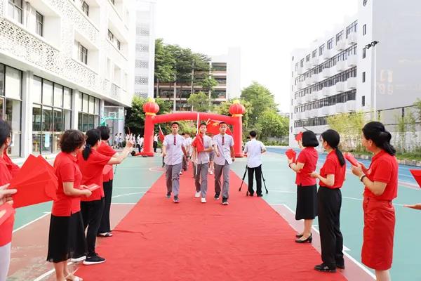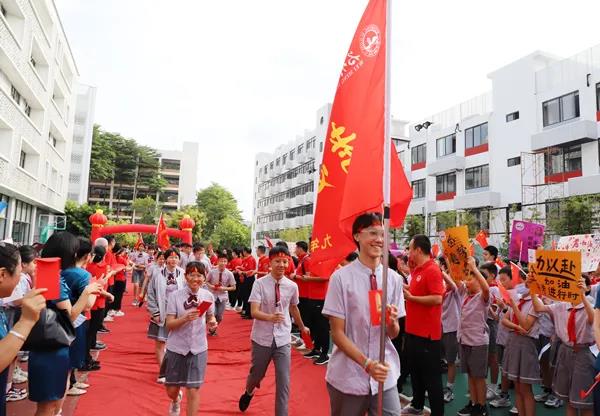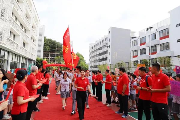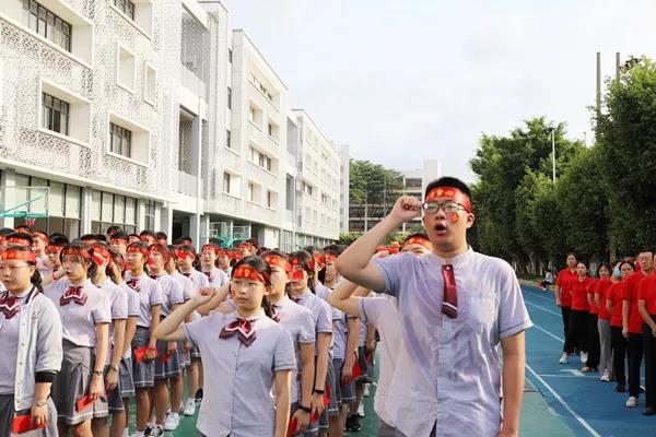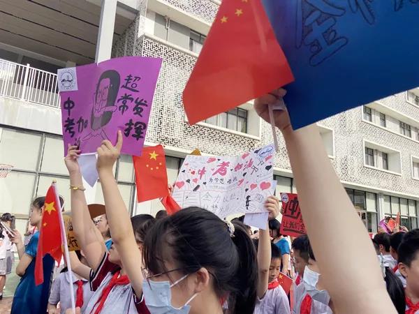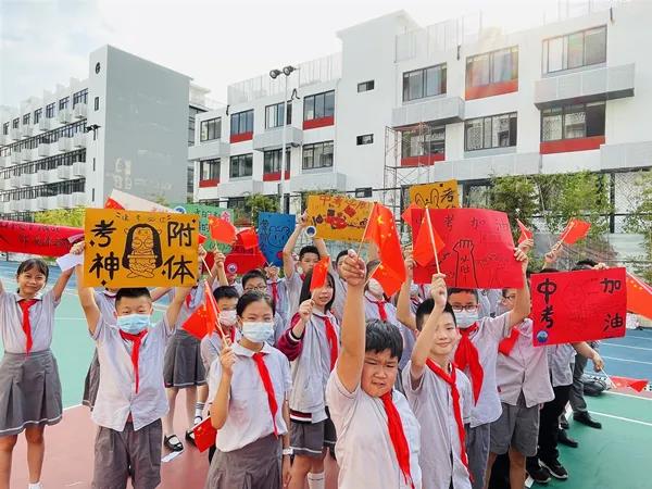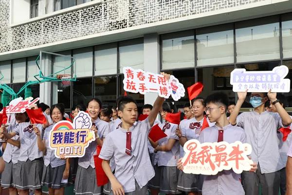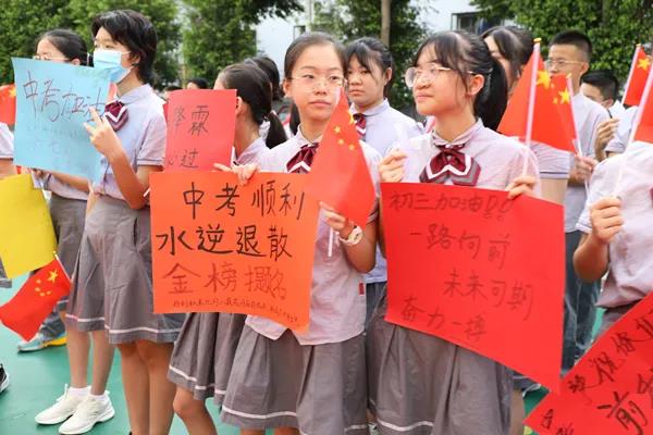 6月21日清晨,宝安区为明双语实验学校隆重举行首届初三年级中考壮行大会,全校师生为即将参加中考的学子们送上祝福、加油助威。