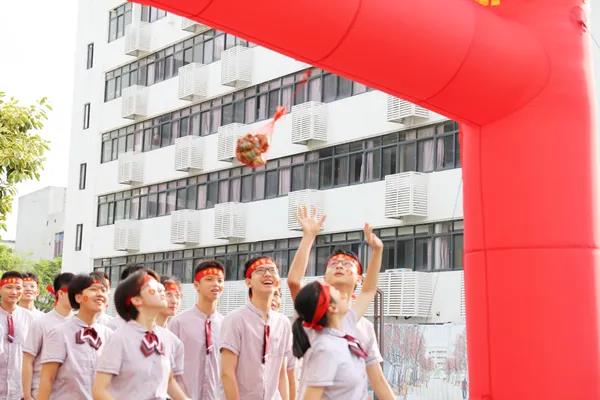 听着声声鼓响,看着张张笑脸,初三的勇士们头戴中考必胜发带,手持旗帜穿过“德胜门”,头顶寓意“高粽”,雄赳赳、气昂昂奔赴战场……