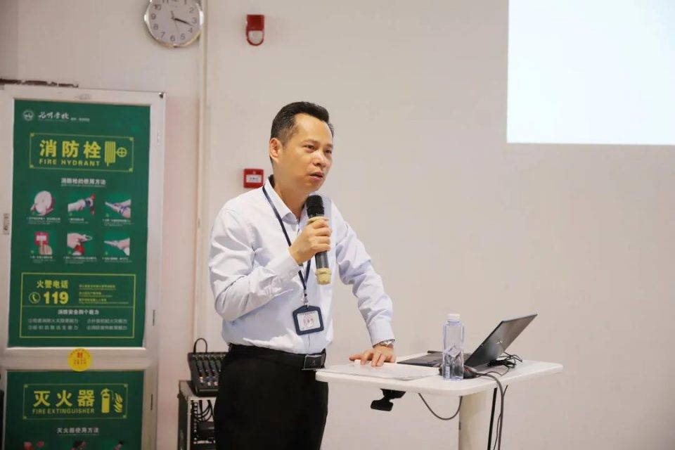 他强调老师们在教育教学中,第一要研读新课标,提高理论素养,坚持教学中研究,研究中教学。第二要树立整体观,提高课堂效率。做到“三结合、四个意识”,新旧知识结合,教学与实际生活结合,运用能力和应考能力结合;角色意识、组织意识、结构意识和文化意识。重视课堂教学组织的建立与运行,探索合作学习型课堂模式的构建。重视课外作业布置的科学性,做到基础性作用于创造性作业合理搭配(应把作业布置的合理性与科学性作为重要的科研课题去实践研究)。第三是指导科组建设,发挥团队作用。每个学年均提出相对固定的科组目标、年级目标、年度核心课题,并制定实施方案。根据不同年级规划学期教研活动,营造健康活泼积极向上的文化氛围。