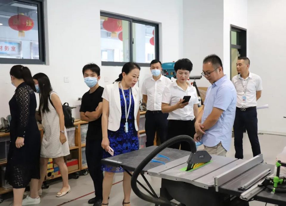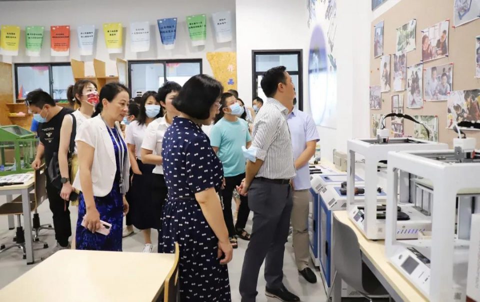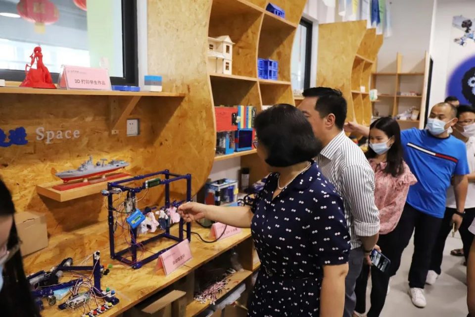 走进创客教室,各位企业家对我校创客教室的规划、课程设置、学生作品纷纷点赞。