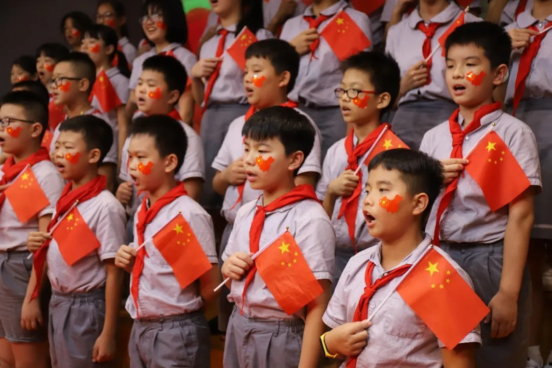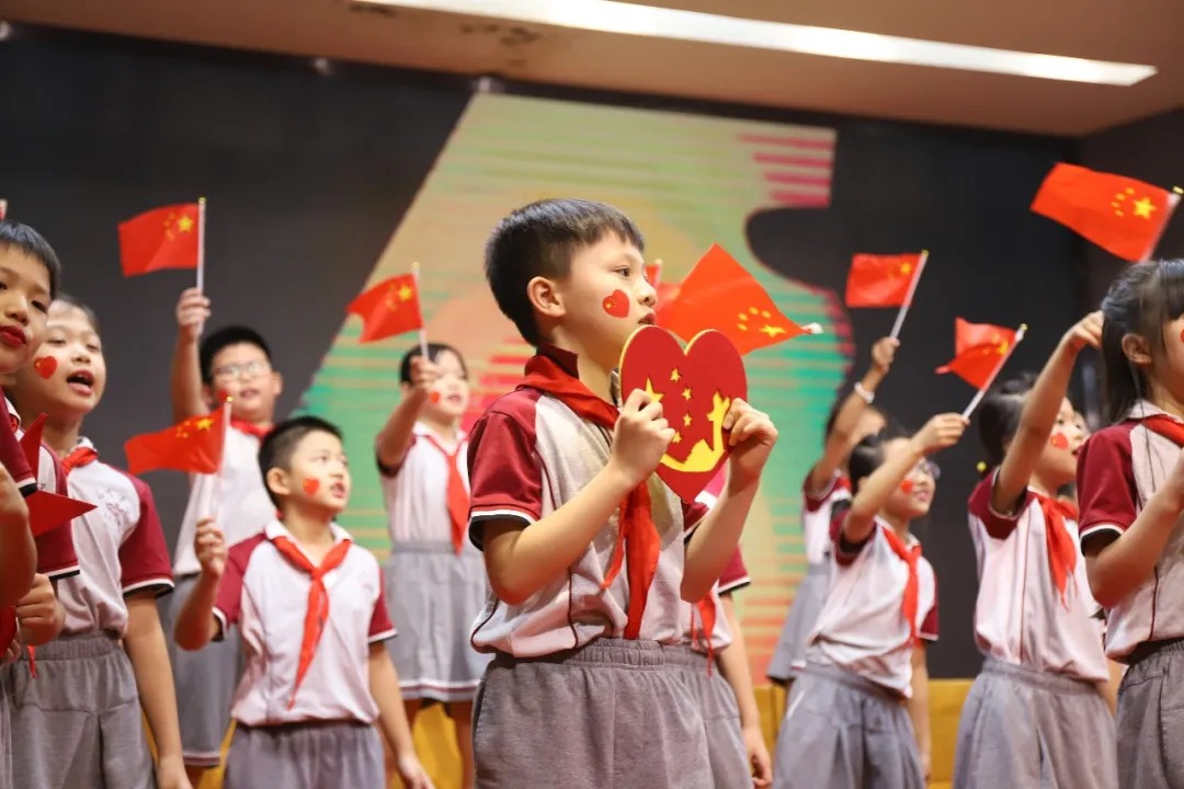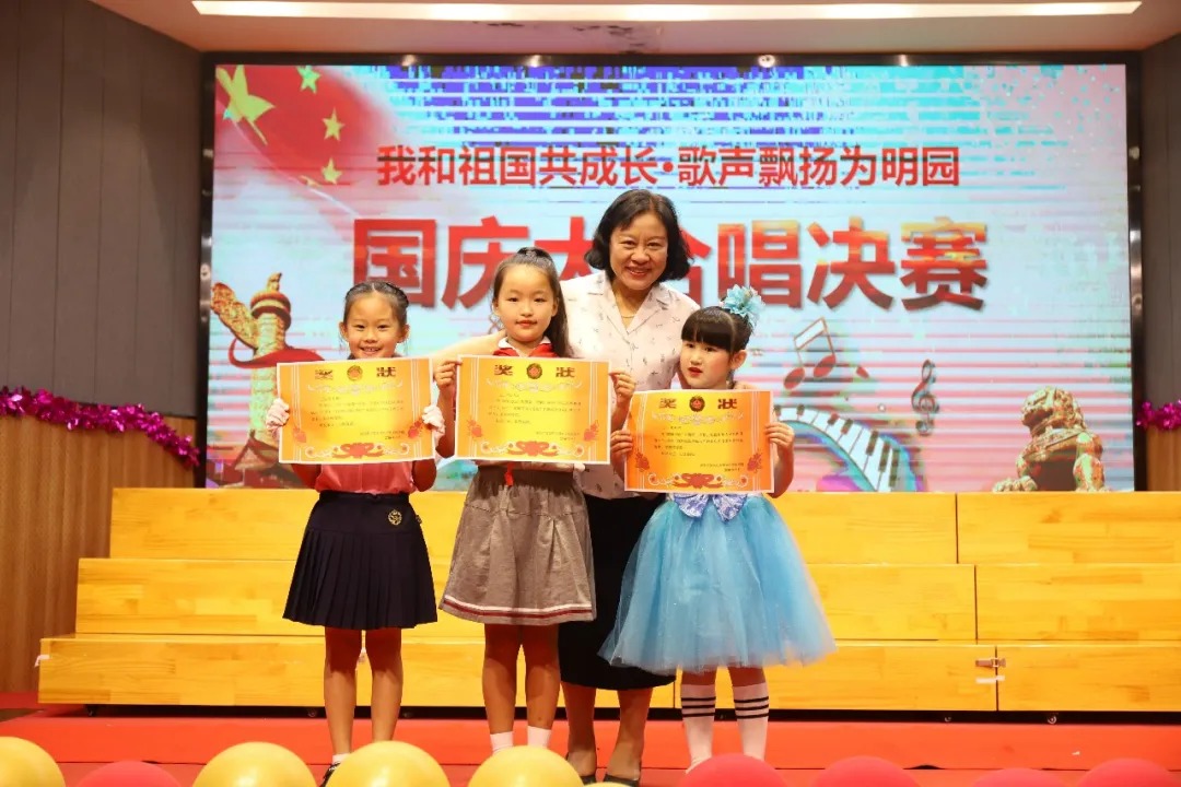 《名字叫中国》《祖国祖国我们爱你》《七色光之歌》《让我们荡起双桨》《我和我的祖国》《黄种人》《国家》《歌唱祖国》《春天在哪里》这一曲曲飘扬在为明校园的每一个角落、也展现了孩子们积极向上的精神风貌和拳拳爱国之心。