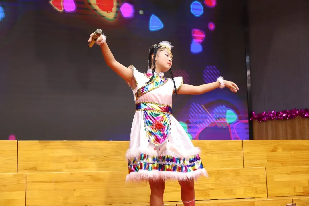 更有四年(4)班陈诗涵带来的《阿娃细娃》和五年(4)班王佳琪演唱的《童年的勒勒车》,他们用优美的舞姿和动听的歌声演绎了这两首非常具有民族特色的歌曲,也表达了56个民族是一家,每个民族深爱着我们华夏中华的感情。