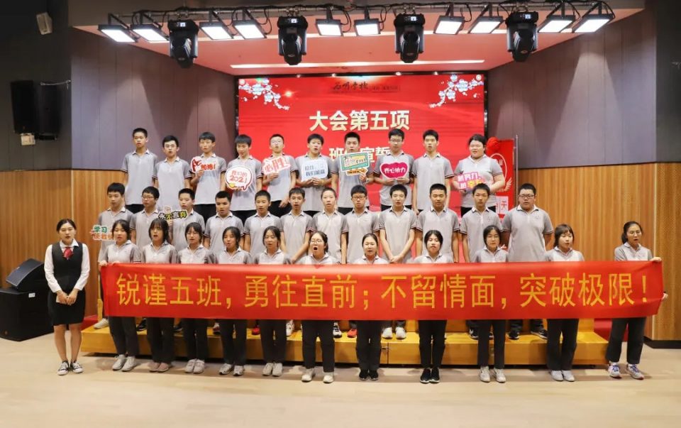各班依次登台,班主任带领全班共同宣誓,学弟学妹为每个班级送上祝福卡片,这是承载心愿的满满仪式感,更是他们表达决心、锁定目标的郑重之举!他们的宣誓气势如虹、声声铿锵,他们共同的决心更需要父母、老师、学校的共同见证。