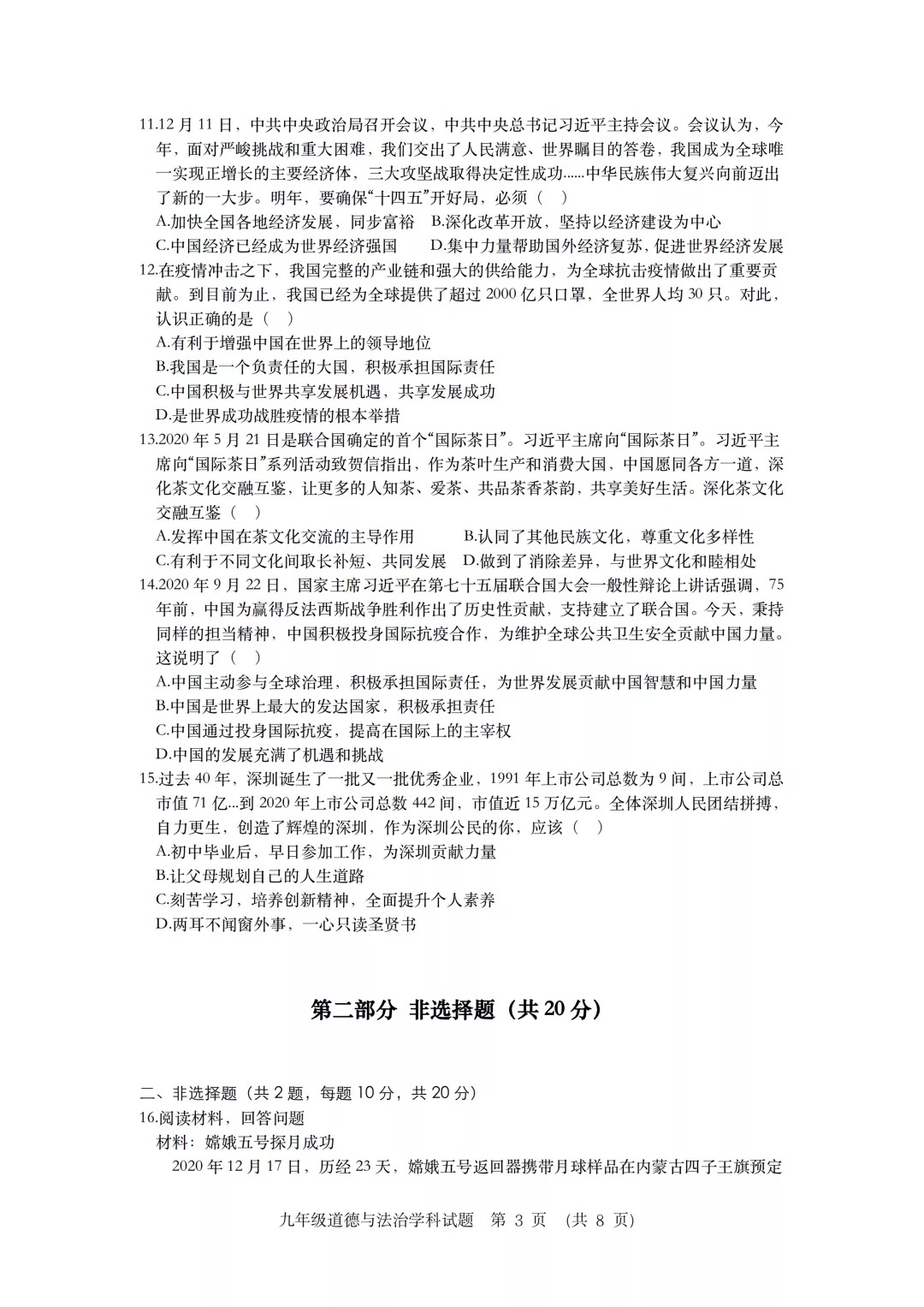 本次命题大赛是教师专业发展的一次锻炼和提升,以赛促学、以赛促教,引导教师深入研究相应的学科试题,把握中考和联考命题规律及考试方向,促进了教师深入理解并准确把握课标内涵及学科价值,提高了教师的学科素养和教学能力。本次命题大赛有助于老师们自觉把考查知识点植根于日常的教学实践中,把命题作为教师基本功的重要组成部分,用以指导课堂教学,提高课堂教学的针对性和有效性,从而为全面提升教育质量打下了坚实的基础。