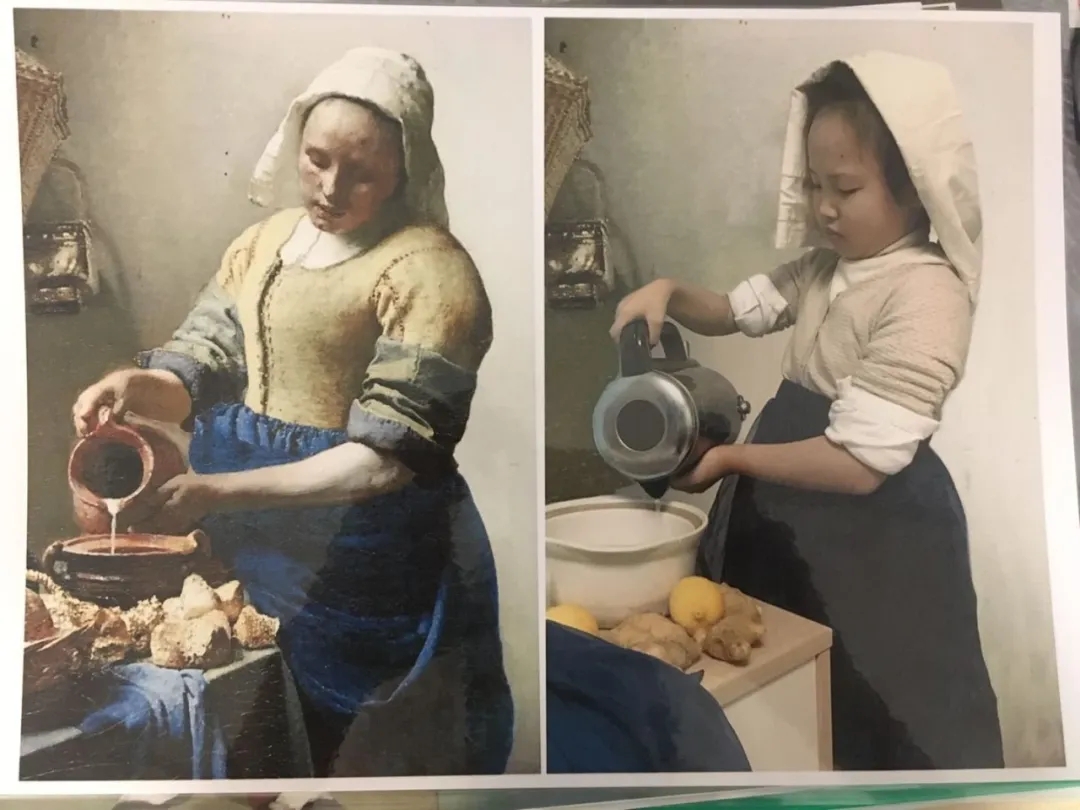 创意发起人巧克力老师和叶子老师说:“首先小朋友们要选择心仪的名画,然后仔细观察这些名画,包括背景和一些细节,最后准备道具和背景进行模仿。我们希望以小朋友喜闻乐见的形式开展美学教育,提升小朋友欣赏美、创造美的能力。”