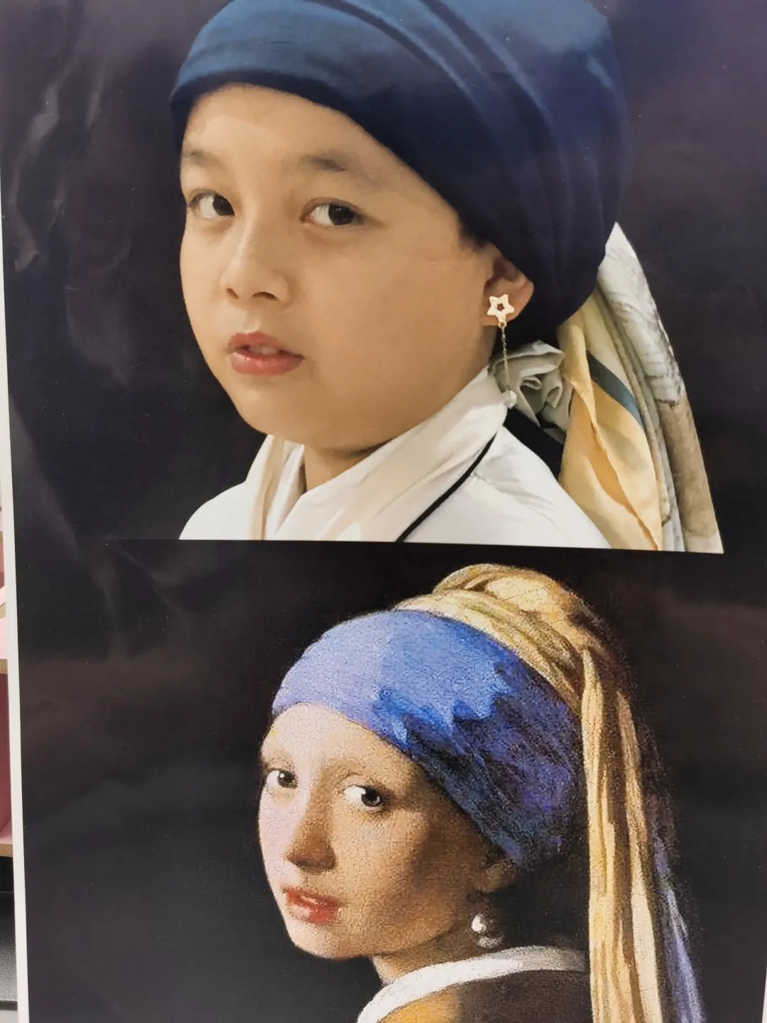 蓝色围巾和bling bling的耳环还原了油画中少女的特质,谁有我美,不服来PK!