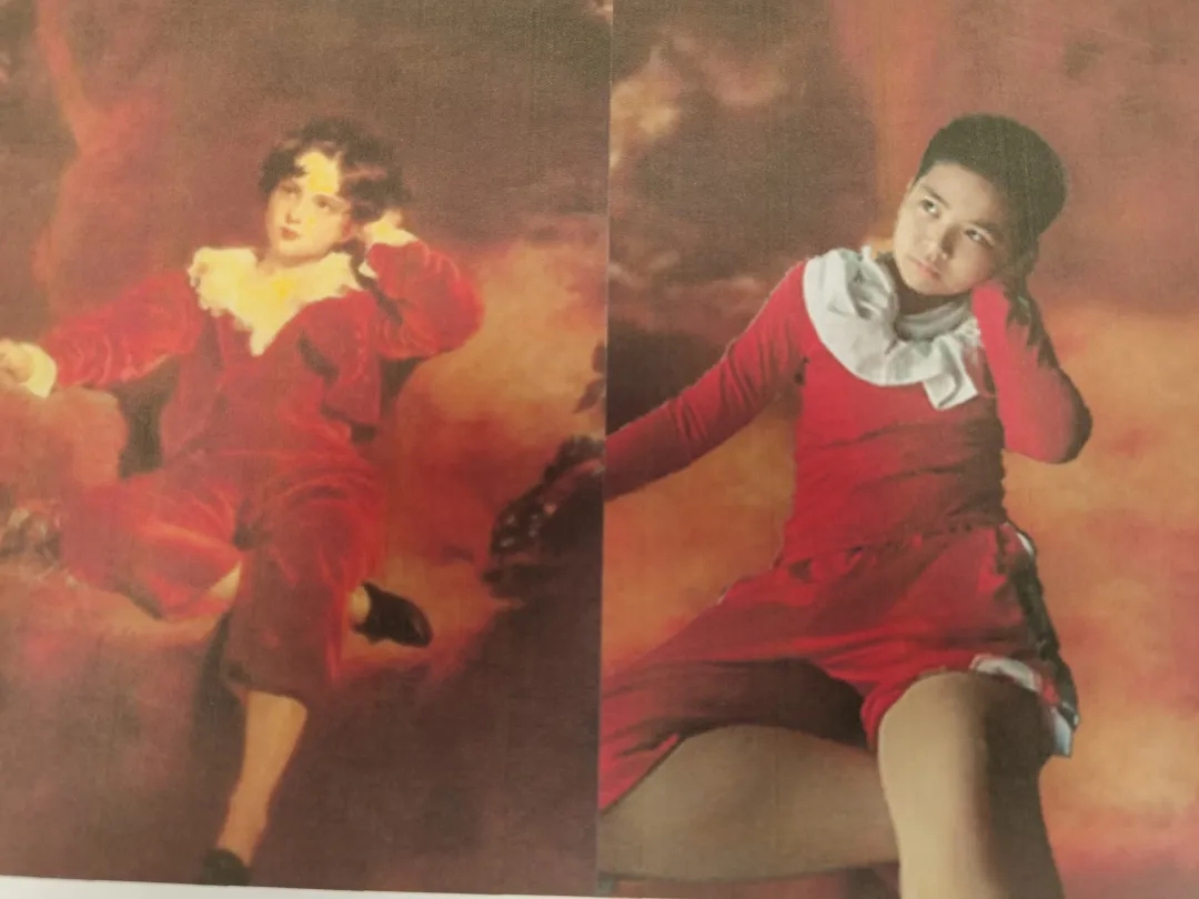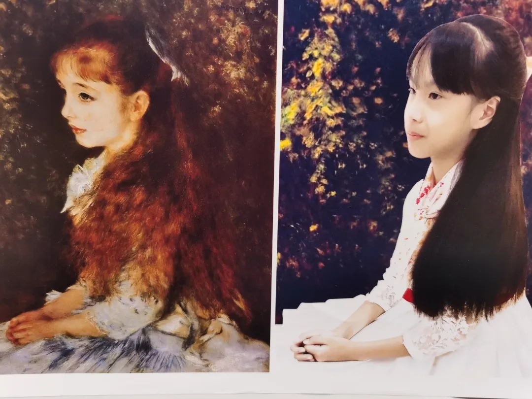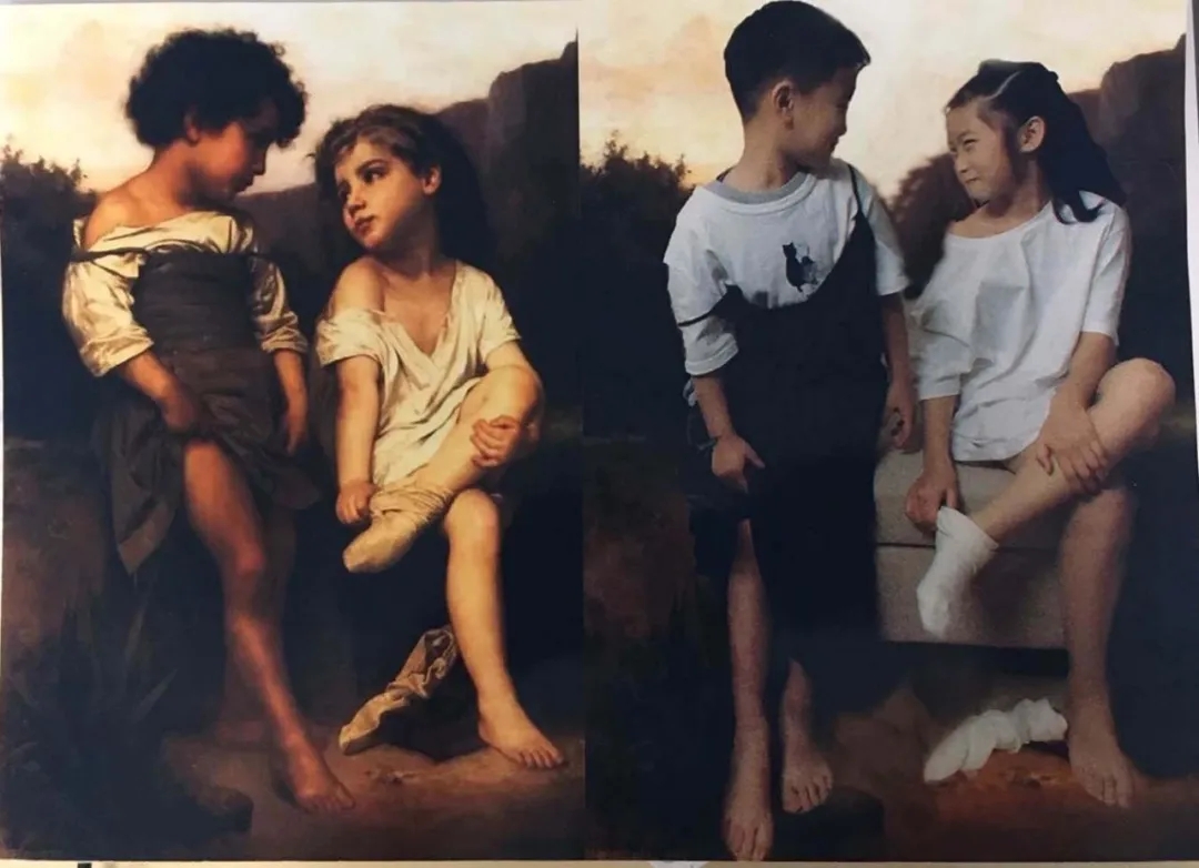 一千个人眼中有一千种美,画家用创造的双手凝固了永恒的美丽,孩子们的创意使这种美延续。小朋友举手投足间透露出正经和可爱,甚至连背景都力求接近原画,乍一看还真像橱窗里的油画呢。